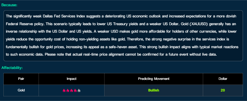 Weakness in the Dallas Fed Services Index and Its Impact on Gold (XAU/USD) with AI Analysis